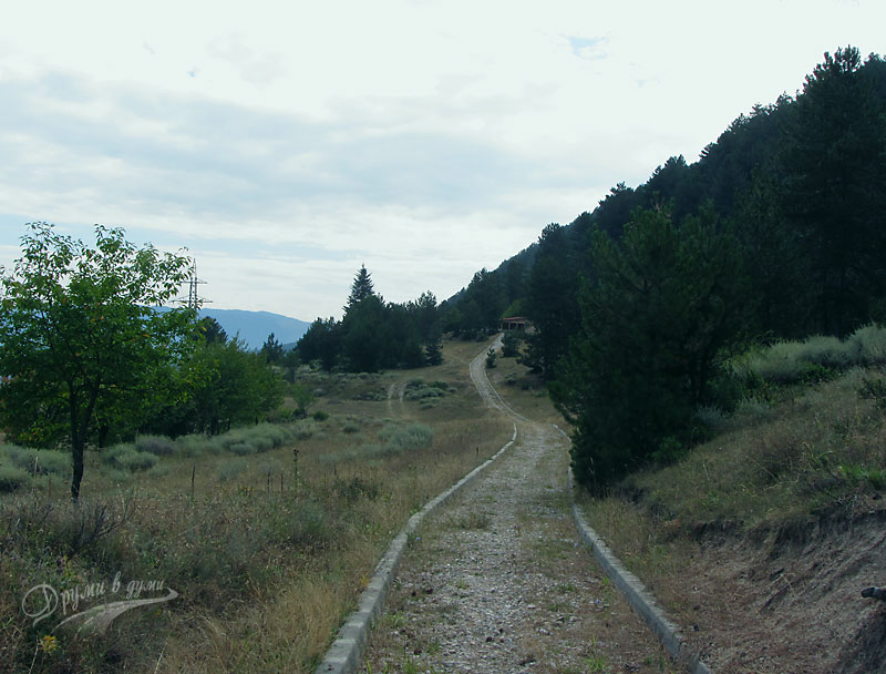 Друг вариант е да продължите по черния път, успоредно на вело-маршрута и там, където той се отделя от пътя, да оставите колата и да продължите по изградената алея. (Между другото малко след това място черният път става много лош и трудно може да се измине с кола.)