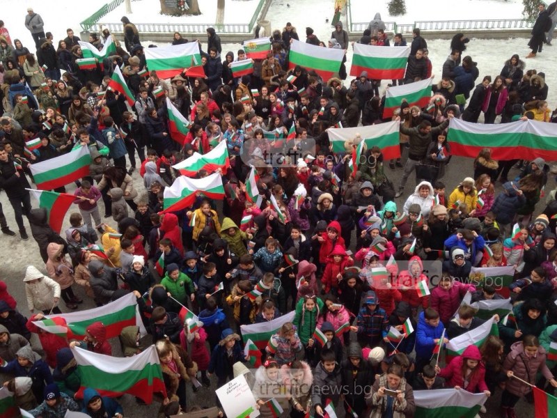 Въпреки минусовите температури, малки и големи развяха българския флаг и заедно запяха химна. Някои от тях държаха в ръце плакати с надписи „Аз обичам България” и отдадоха почит на загиналите за освобождението на страната. Патриотичното настроение не остави равнодушни и пловдивчани, които минаваха покрай училището и също станаха част от инициативата.
