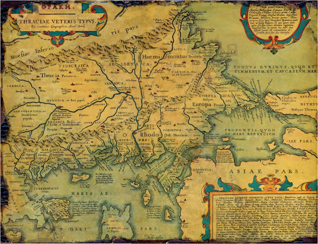 ТРАКИЯ- карта на А.Ортелий, в областта Мизия е отбелязано името българи