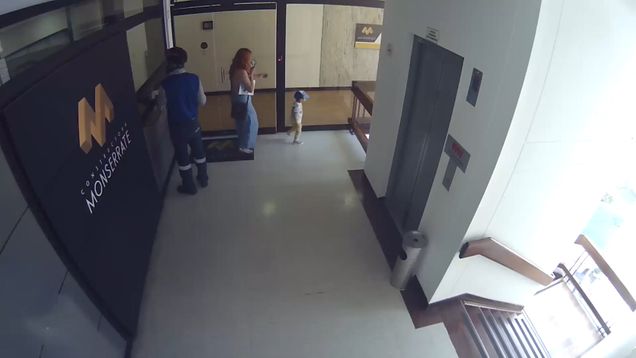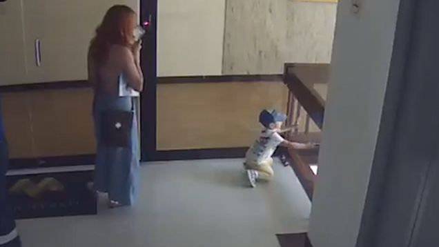 Тя вижда, че момиченцето се насочва към парапета на стълбище и се пресяга, успявайки да го хване, спасявайки го от тежки наранявания. Охранителна камера е запечатала целия инцидент:
