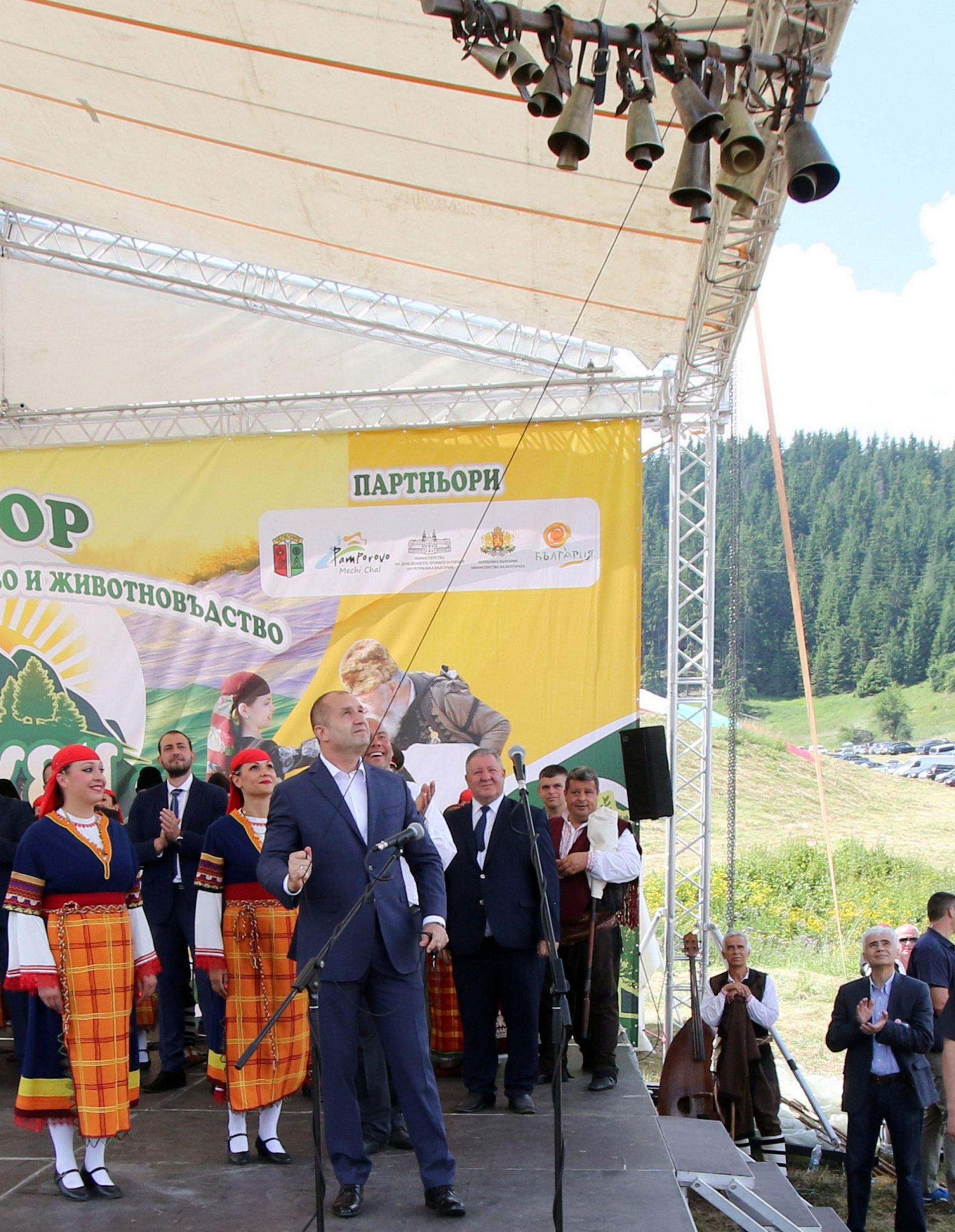 Мисията на Роженския събор е да ни напомня, че така както нашите каба гайди могат заедно да разлюлеят една непоклатима планина, така всички ние с дружни усилия можем да надмогнем апатията и да въздигнем България там, където заслужава да бъде, заяви президентът Румен Радев в словото си на откриването на Събора на народното творчество и животновъдството "Рожен 2019". Според него Роженският събор е празник на нашата българска родова памет и жив извор на българското единство. Днес над волните родопски поляни цари автентичният и непокорен български дух, посочи държавният глава. Съборът на Роженските поляни бе открит със звън от наниз чанове, разлюляни от президента и изпълнители от ансамбъл "Родопа".