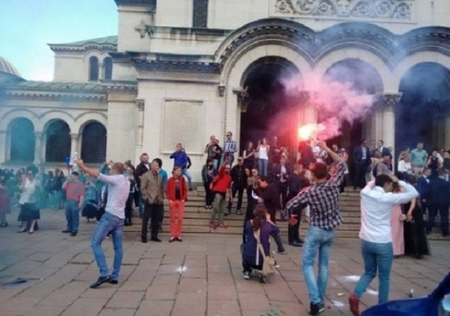 След тържествата в центъра на София по случай 24 май на едно от най-знаковите места за столицата можеше да се наблюдава грозна картинка. Часове след гръмките речи, официалните церемонии и красивите химни, изпълнени пред Народната библиотека, в непосредствена близост – пред храм-паметника „Свети Александър Невски“ абитуриенти сътвориха грозно зрелище.