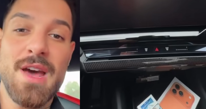 От клипа се вижда, че Емрах вече се е сдобил с новия Айфон, чиято цена е около 3500 лева.