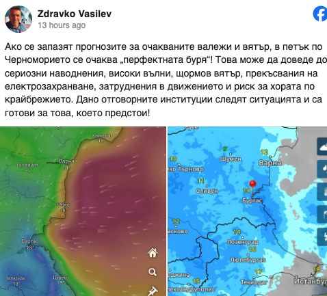 Здравко Василев предупреди за нещо страшно, което се задава към Черноморието в петък. Първият победител от "Биг Брадър" публикува и карти във Фейсбук, относно стихията, която може да удари.