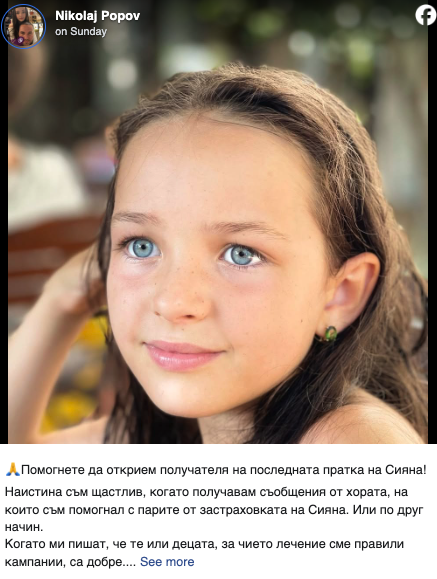 "Нека не забравяме, че добрините не трябва да се правят само по празници, а винаги, когато можем. Така Сияна живее – дори без да е тук физически", пише той.