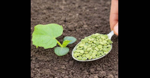 И така, поръсете 1 супена лъжица грах и покрийте с малко пръст.