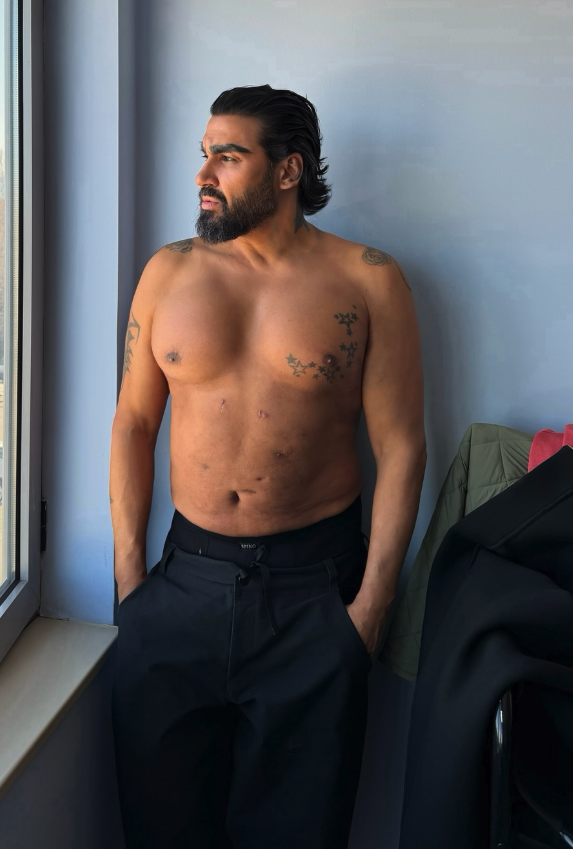 "Трета седмица от операцията за уголемяване на гърди с мъжки импланти. Чувствам се специален", пише той. И благодари на пластичния хирург д-р Николай Георгиев, извършил процедурата.
