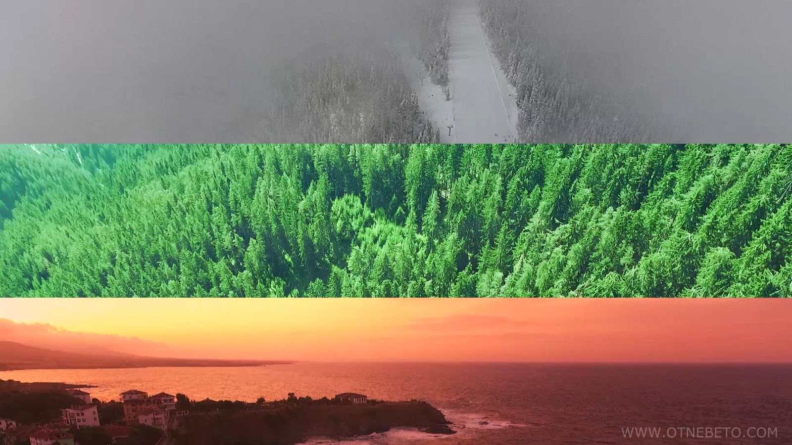 - Кадрите са изцяло заснети с дрон от въздуха от фотографа Светлин Маринов, като са показани следните места от нашата родина (в реда на появяването им):