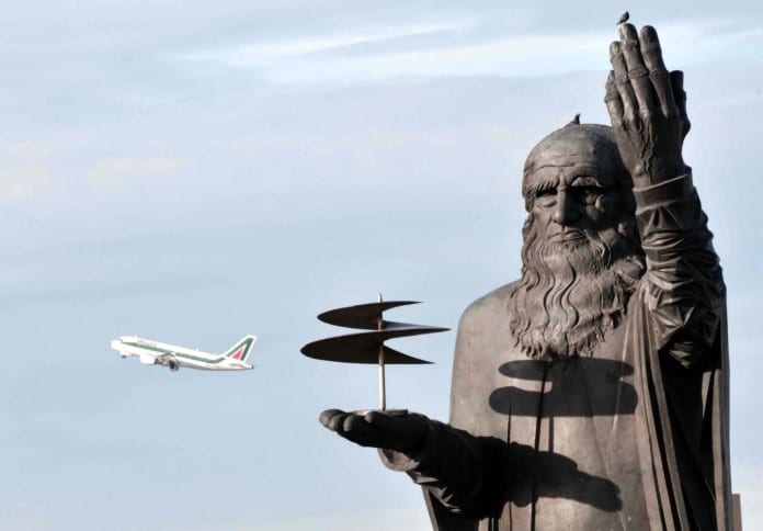 римско летище Фиумичино, едно от най-натоварените в Европа, статуя на Леонардо