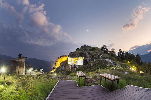 Прожекцията на филма е съчетана със специални димни и светлинни ефекти, сред които са светлинна заливка на скалите наоколо и 4 киловатов прожектор, който с мощен лъч прорязва небето над крепостта.