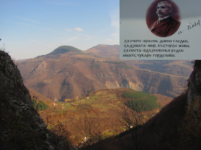 „Околността беше покрита с буйната зеленина на орешаците. Те тъдява растат в голямо изобилие, растат и по урвите, и по планината. Колкото повече се качвахме, толкоз пътя ставаше по-върл и лош; но затова пък изгледа наоколо печелеше. Долината се разтваряше по-живописна, заградена от зелени и стръмни височини. На изток от Искъра те се издигаха твърде високо, прошарени с дъбови горици, усамотени ниви и колиби, заглъхнали в шумалак и залепени на урвите като орлови гнезда. Отсам, право над главата ми, стърчеха грамадните жълтеникави скали, що увенчават чукара и които такъв странен ефект произвеждат, като ги гледаш от линията...