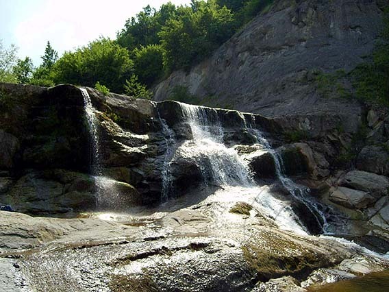 прагове. Най-големият водопад се спуска от около 20 метра височина, като се разделя