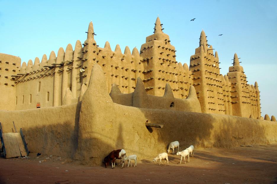 Голямата джамия в Джене е най-голямата сграда от кирпич в света, смятана от много архитекти за най-голямото постижение на Судано-сахелския архитектурен стил, макар и с определено ислямско влияние. Джамията се намира в град Джене, Мали, в алувиалната равнина на река Бани. Първата джамия на това място е построена през 13 век, но сегашната сграда датира от 1907 г. Освен център на религиозната общност на Джене, джамията е и една от най-известните забележителности на Африка. Заедно с целия град, тя е обявена през 1988 г. от ЮНЕСКО за част от Световното културно и природно наследство. Снимка: trevor kittelty / Shutterstock