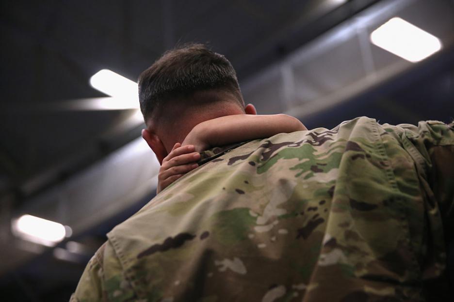 Момиченце прегръща своя татко, който се е завърнал от Ирак