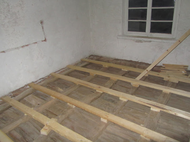 През юни съм докарал ремонта на бъдещата спалня до това ниво. Старият под беше