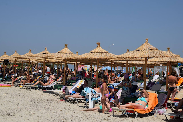 „Искат ни 5 евро за чадър и два шезлонга, консумацията е отделно – фрапето е 2,50 евро, водата – едно евро“, реагира кърджалиец. По-късно научаваме, че гърците вече надушват „тарикат-туристите“, които са си наумили да прекарат един ден на сянка без пари и затова още в началото им обявяват неофициална входна такса. Лесно ги разпознават по хладилните чанти и големи торби, натъпкани с ядене и бутилки с различни питиета.