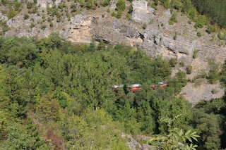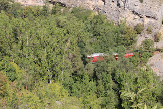 Имахме късмета и да зърнем минаващия товарен влак, който обслужва мините в близост. Казвам го като събитие, понеже може да се види само 2-3 пъти на ден. А за децата си беше жива атракция да наблюдават криволичещия по завоя влак.