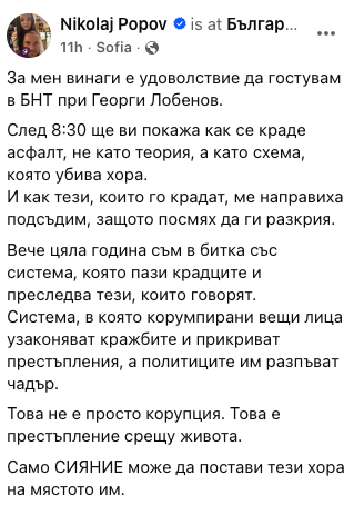 Самият Попов, който по-рано беше в БНТ, написа в отговор коментар в социалната мрежа: