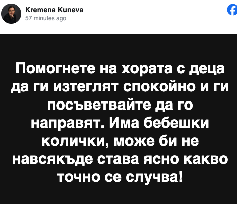 "Помогнете на хората с деца да ги изтеглят спокойно и ги посъветвайте да го направят. Има бебешки колички, може би не навсякъде става ясно какво точно се случва!", призоваха в социалната мрежа.