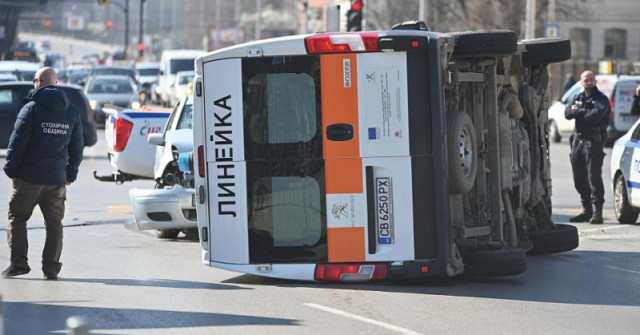 Линейка се преобърна и затапи движението на ключово кръстовище в центъра на София: