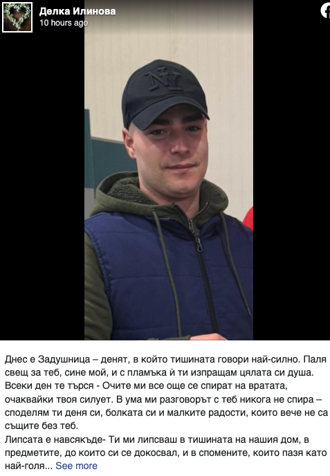 Делка Илинова, майката на трагично загиналия Никола Киров отбеляза с пост във фейсбук днешният ден, в който почитаме душите на загиналите. Ето какво написа почернената майка: