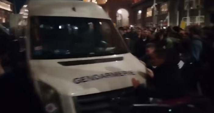 Протестиращи клатиха един от докараните автобуси на жандармерията, предаде Дарик.