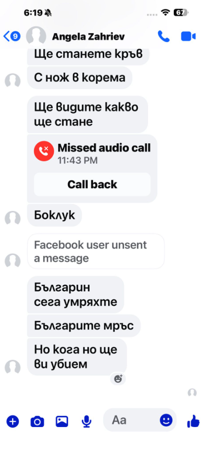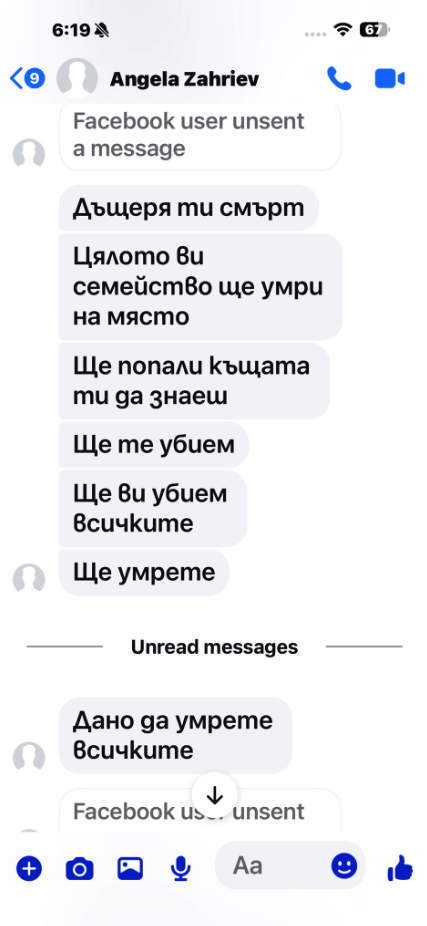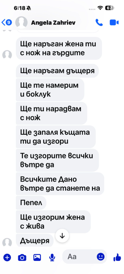 "Това е престъпление", заяви Попов, който показа и ужасяващи скрийншоти на заплахите, които са отправяни към него от онлайн потребител с името Angela Zahriev.